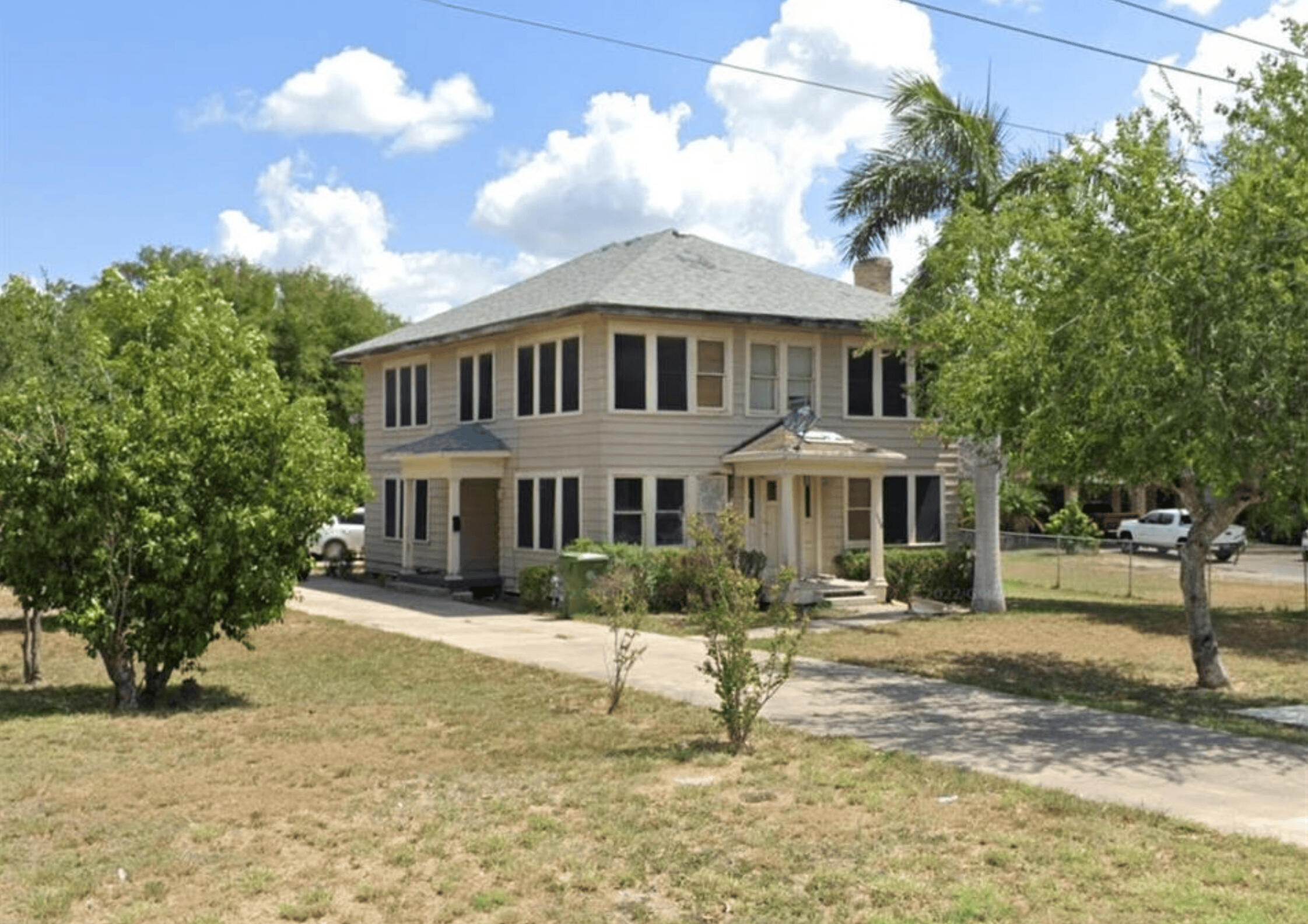 Located on a corner lot at 805 Lakeside Blvd in Brownsville, Texas, this colonial-style fixer-upper offers 4 bedrooms, 2 baths, dual living spaces, a detached two-car garage, and a spacious backyard near Sunrise Mall and South Padre Island.