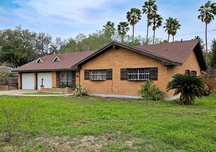Located on a corner lot at 805 Lakeside Blvd in Brownsville, Texas, this colonial-style fixer-upper offers 4 bedrooms, 2 baths, dual living spaces, a detached two-car garage, and a spacious backyard near Sunrise Mall and South Padre Island.